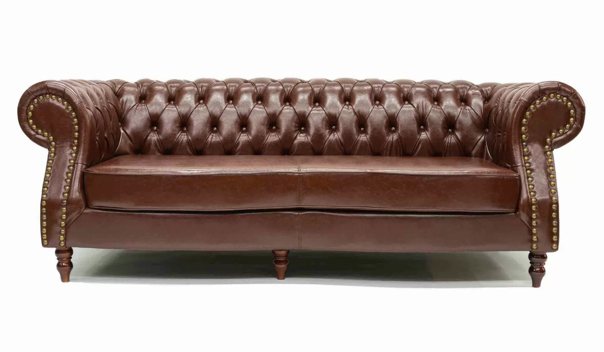 The deep button tufting exudes an aura of elegance and discerning taste, the buttoned leather upholstery defines this sofa's classic appeal.