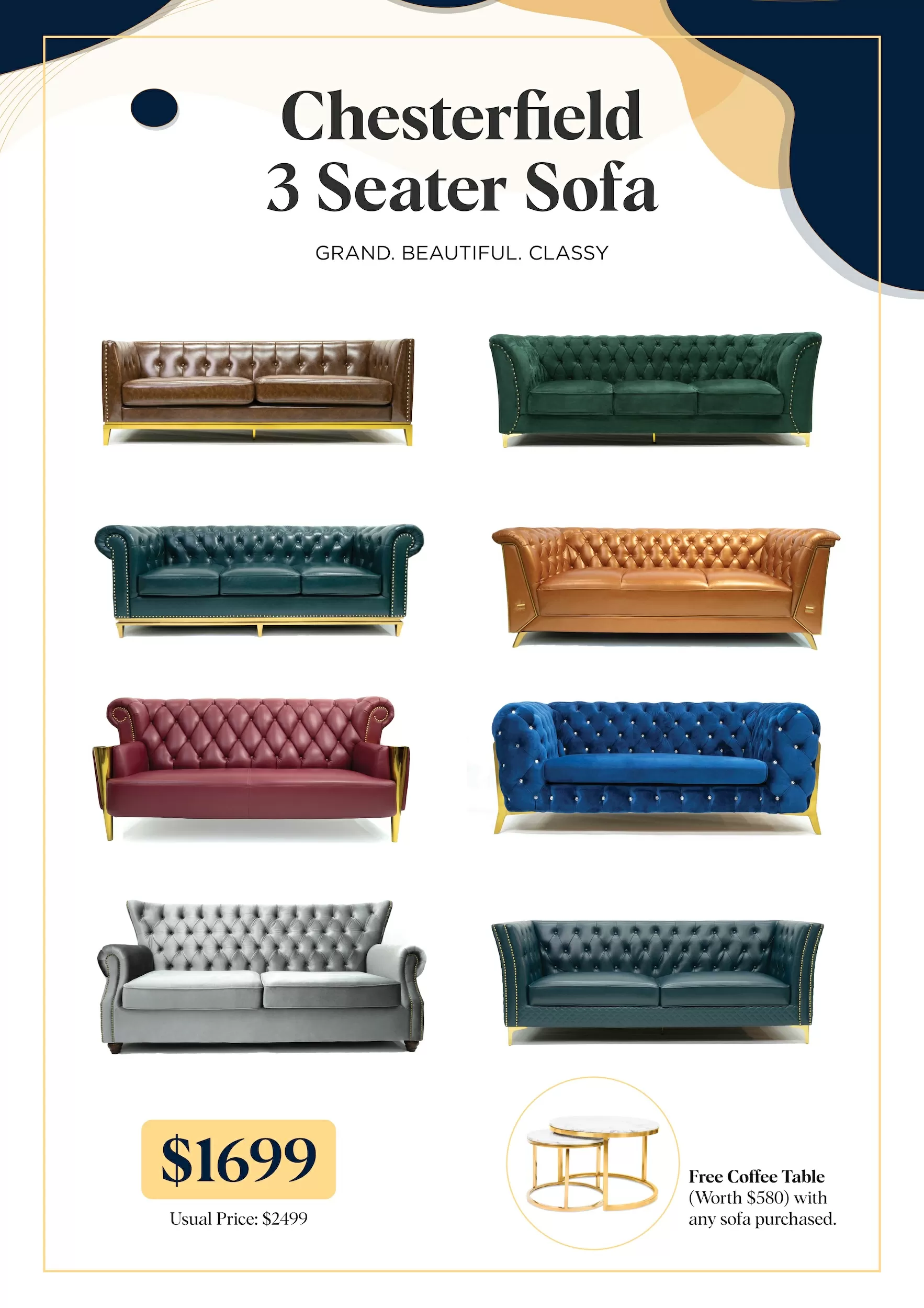Get a FREE Coffee Table (worth $580) with every sofa purchase!