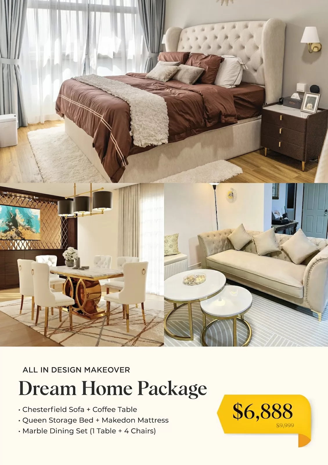 Happening from 1 July - 31 July 2024 , we are running an exclusive package deal with lots of freebies just for you! Give your home the revamp it deserves when you purchase furniture from us at a package deal of $6888. (U.P $9,999)