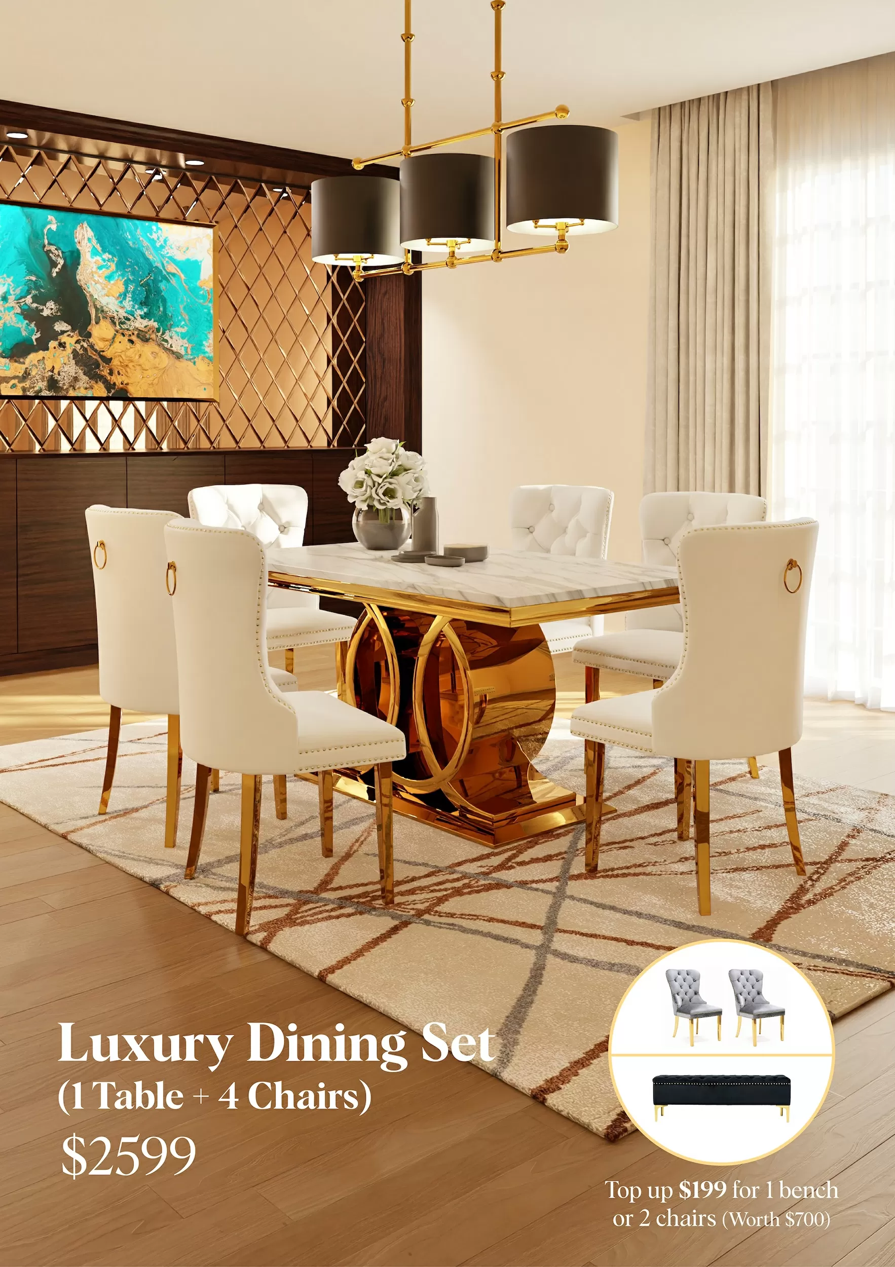 • Get a FREE bench or 2 dining chairs when you purchased any marble dining sets.