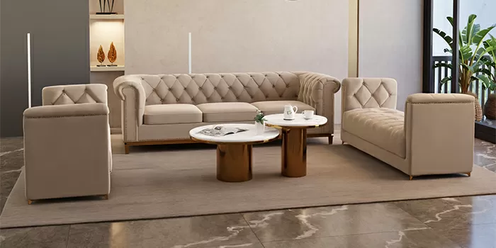 Package Includes:• Chesterfield Sofa + Gold Marble Coffee Table